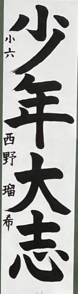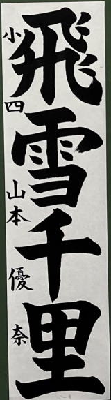| 最優秀賞受賞!! 仲村一華さん(小6)旧学年 日本教育書道研究会賞3名!! 西野瑠希くん(小6)旧学年 味本有彩さん(小6)旧学年 山本優奈さん(小4)旧学年 |