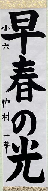 | 半切部門「特選」2名受賞 南坊城日向子さん(小5) 氏本 りら さん(小6) 半切部門「特選」2名受賞 南坊城日向子 さん(小5) 氏本 りら さん(小6) 半切部門「入選」受賞 山本優奈さん(中1) 八つ切り・半切部門「入選」3名受賞!! (八つ切り・半紙部門は入選が最高賞です) 遠藤 彩幸さん(小5) 亀井 結香さん(小5) 花畑 心菜さん(小5) 山野 碧さん(小5) 仲村 一華さん(中3) 南坊城麻悠子さん(中3) ![]() ![]() ![]() |