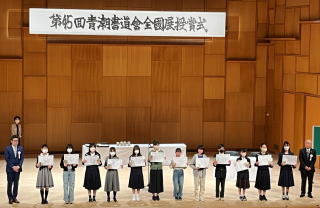 | 特別賞受賞の生徒さんは4月4日シティプラザ大阪での授賞式にご参加下さいました「半切コンクール」「学生書初めコンクール」特別賞作品と「特選」作品は 4月1日から4月5日まで大阪市立美術館 天王寺ギャラリーにて展示されました |