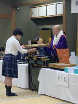 | 金剛峰寺賞受賞!! 山本優奈さん(小4)他団体から出品 平川香恋さん(大学)学校クラブより出品 村田樹優さん(高3)学校クラブより出品 末吉将晏くん(高3)学校クラブより出品 高野山管長賞 氏本りらさん(小3) 氏本紗綾さん(中2) 田中美咲さん(高1) 六佐阿侑香さん(大学) 毎日新聞社賞 大橋希帆さん(中2) 池田優衣さん(高3) 阿部智恵さん(一般) 毎日小学生新聞社賞 味本有彩さん(小6) 総長賞 谷口紅音さん(一般) 南山賞 末吉慶大くん(中2) 協会賞 瀬尾虹帆さん(中2) 田中 葵さん(大学) 委員会賞 南坊城日向子さん(小2) 草野初希さん(小4) 金剛峯寺賞受賞の4名の生徒さんは8月4日高野山総本山 金剛峰寺で行われた表彰式に出席されました。 |
