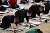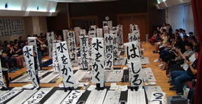 | 本年も7月30日にLICはびきのにて席書き大会を行いました。 麗鳳書院を代表する50名の生徒さんがご参加下さいました。 ご参加の皆様ありがとうございました。 当日席書きした作品は、日本書字文化協会主催の第6回全国書写書道総合大会に出品します。結果は9月30日に東京都中野区で行われる中央審査会で決まります。 |