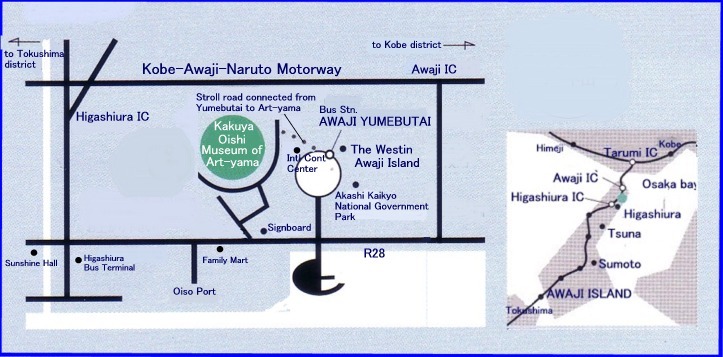 ¡¦Kobe Awaji Naruto car road---Exit into Higashiura Interchange, then go north for 5minutes on route 28.