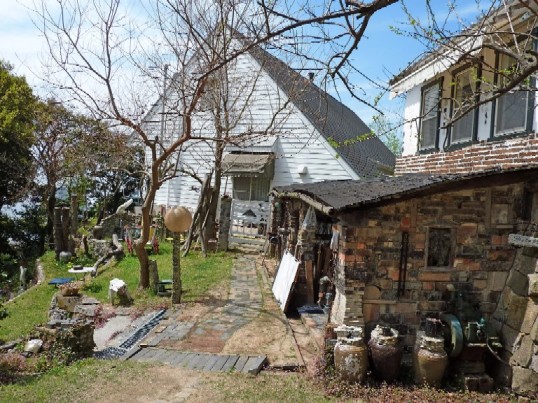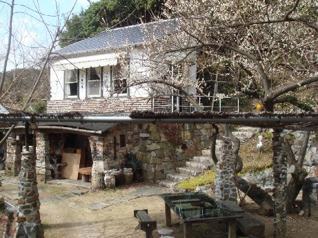 ボランティアの手によって、うっそうと茂った雑木林の草刈からスタートしたアート山作り。まず最初に完成したのが小展示室の「イーストギャラリー」でした。今は洋画家の大石鉦子さんの作品展示室となっています。