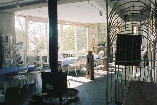 メインギャラリー1階展示室とカフェ絶景を見ながらどうぞごゆっくり。