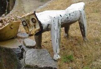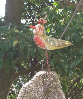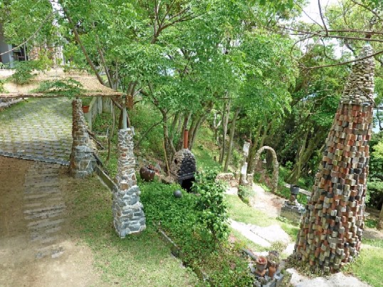 手作りの小道を歩けば、思いもかけない場所に遊び心いっぱいのオブジェが隠れています。