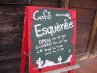 | お店の入口 | 入口横の看板 | 店内はエスニック調 |