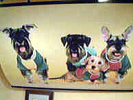 | 壁に沢山のワンちゃんの写真 |
