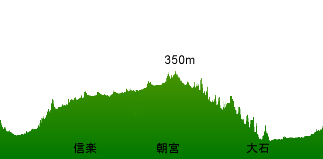 ここから陶芸の森のある信楽までは国道307号を約3km。陶芸の森は国道から右へ折れた山の上に陶芸館がある。国道の峠を越えると信楽の町にはいる。信楽の町から朝宮にかけてはなぜかいつも向かい風である。しかし道は広く交通量も少ないので走りやすい。朝宮にはいると下りになる。しゃれたレストラン・ガストハウススイスアルピナのところで国道422号に右折する。信楽川に沿って走る国道422号は整備中で大石までの約3分の2ができあがっている。緑の山に囲まれた新しい道は快適に走れる。大石方面から上ってくるサイクリストに時々出会うが、トレーニングの目的でなければ逆コースの方がずっと楽のように思える。 (95/3/21,97/1/4,10/12) |