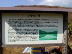 少し休憩してから小女郎ヶ池に行ってみる。5分とかからない。小さな池の周辺に多くの人たちが遊んでいる。そばには池にまつわる伝説の看板がある。写真を撮ってから峠まで戻る。