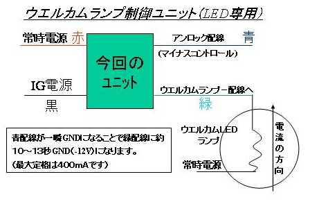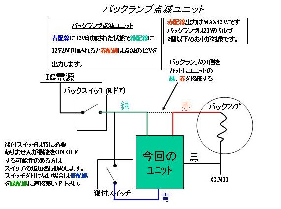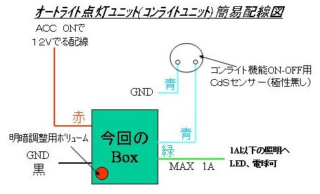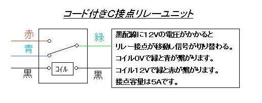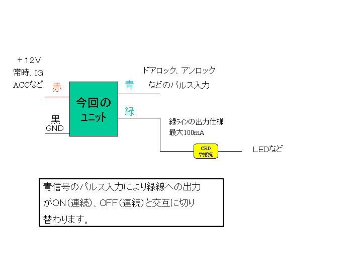 | 赤:常時電源 12V1パルス入力で出力を連続ON、OFFと切替えるユニット |