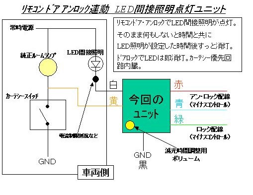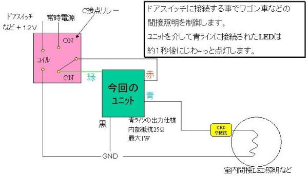 12V入力後約1秒遅延してじわっとLEDを点灯させるユニット |