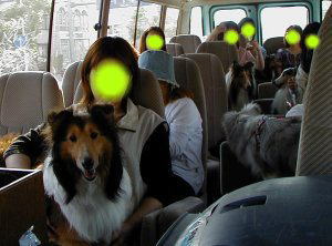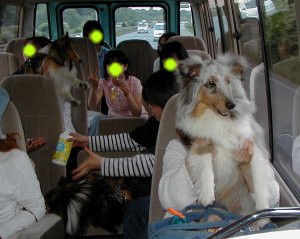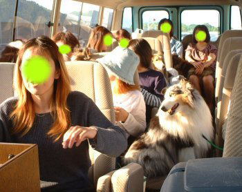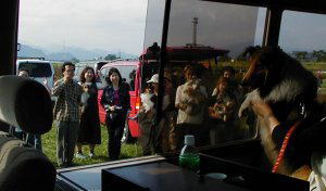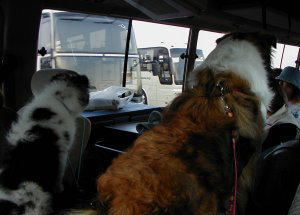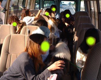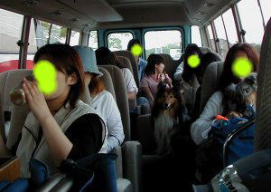 SAでの休憩中の左からワンサ君・シオンちゃん・ターボ君・トーイ君
