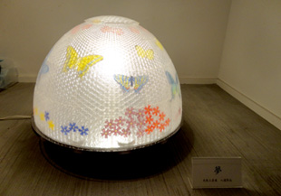 光を放ちながら回転するオブジェは、大阪工芸展に出品し入選した‘夢’と題がついています。