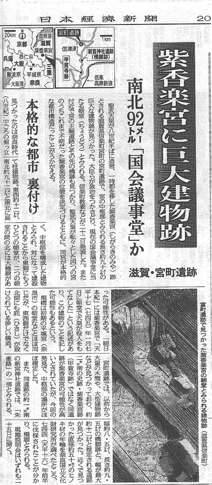 5号でご紹介した紫香楽宮跡から約2キロメートルほど離れた信楽町宮町で紫香楽宮の中枢部と思われる大きな遺跡が発見されました。
