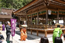 出雲大神宮の『鎮花祭』がありました。花鎮めとは「桜の花が散るのにあわせて疫病が流行ると考えられていて、これを鎮めるためにご祈祷する神事で、平安時代から宮中はもとより全国の各神社でも行われていたそうです。宮司さんにより厳粛に祈祷が行われ、拝殿で神楽「浦安の舞」が奉納されました。浦安の舞とは昭和天皇が詠まれた歌に曲と振りを付けて巫女が舞うもので、平和で穏やかな国であることを願った神楽です。