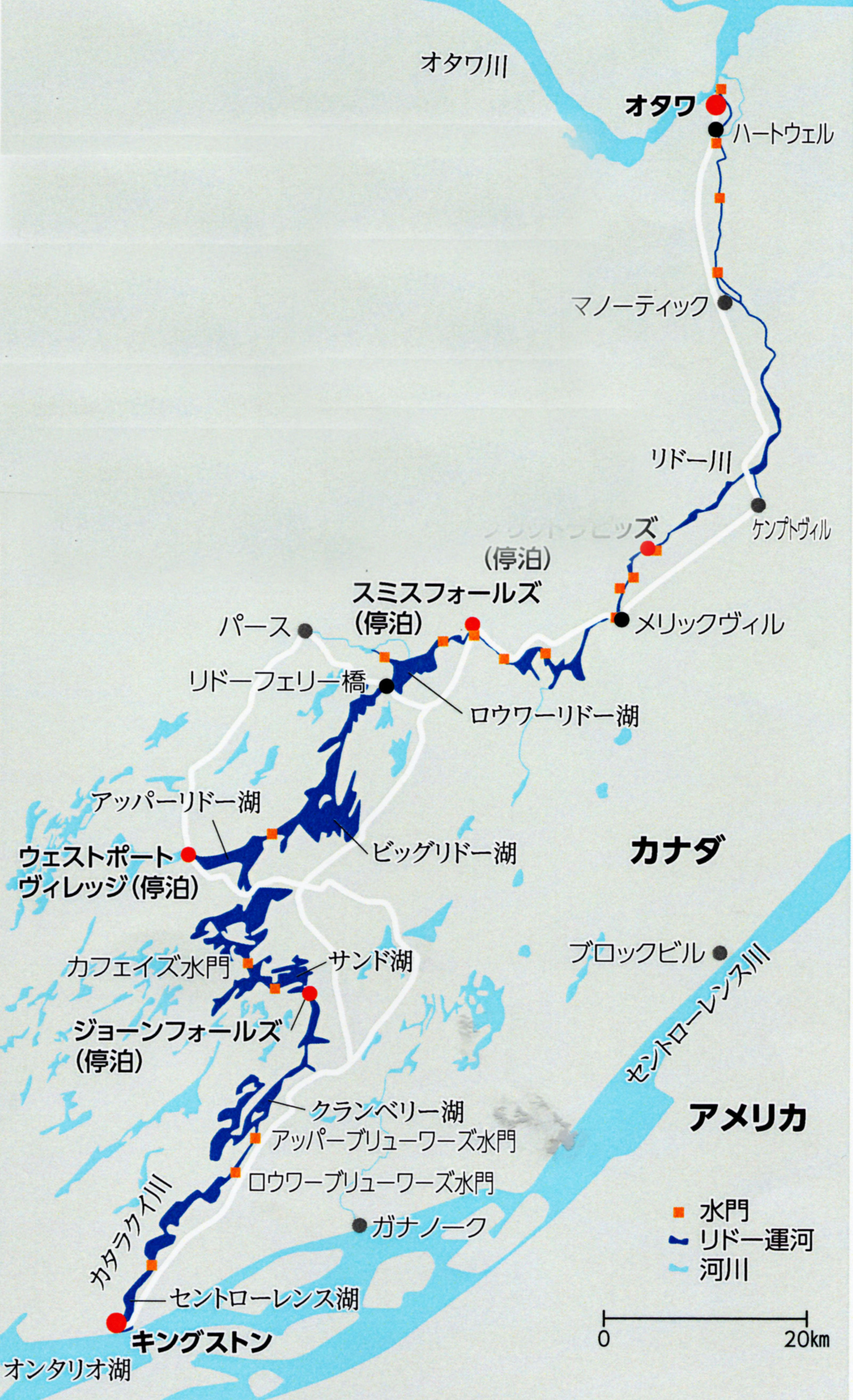 ロウアーリドー湖、ビッグリドー湖を通り、