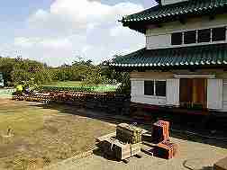 弘前城天守閣は石垣補修のために移動工事中でした。
