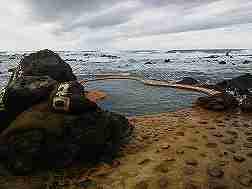 早朝出発で、龍飛崎に早く着きそうなので、日本海側の黄金崎不老不死温泉に寄り道しました。