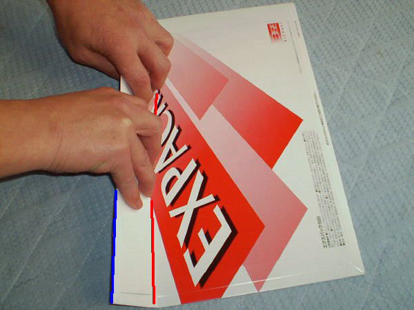 青ラインを折って蓋をする形にします(テープは剥がさないで下さい)