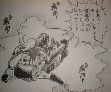 | さあ、最後はお好み焼き屋さんです。のれんに「スエヒロ」とあるのでおそらくリアルゆでたまご先生にゆかりの店です。(検索知識) ところで 驚くべきことにこの天満くん、一般人と馴染んでるんですよ。いかつい顔にパンチパーマなのでただの一般人じゃないかもしれませんが(笑) ![]() こんなタキシードカニ仮面が来店したら、警察を呼ぶか 殺しますよね。正当防衛が成立するんじゃないかと思います。武器持ってるし(後述) ここから天満虎男くん、イキナリ悪人になります。そう。ゆでたまご先生が頻繁に使う手法 “主人公をムリヤリ「正しい」側に見せるため、ムリヤリ勝たせるため、ライバルキャラをムリヤリ悪党にする” です。この手法はこの先何回も使われるから名前決めたいな。 「ライバル悪党化現象」とでも呼ぼうか。 あわれライバル悪党化現象で性格が一変してしまった天満虎男くんは、すでにうどんと串カツで満腹になって苦しそうなみんなにナイアガラ(生ガキ・伊勢エビ・サーロインステーキ入りお好み焼き)を無理矢理食わせようとします。 ![]() さらには、「コテを持つフォームが違うー!!」などと意味不明なことを叫んで竹刀で与輪木をどつきます。与輪木だけを。さすがのミリンちゃんたちもドン引きです。 とどめに、「お・・・大阪の魂ともいうべきお好み焼きを床に落とすとは・・・」「おんどりゃー大阪をなめとんのかーっ!!」 と お好み焼きを落っことしてしまった与輪木(竹刀でグイグイされたせいで落としてしまったにもかかわらず)を竹刀でボコボコにします。もちろん与輪木だけをです。 そんな虎男くんの暴挙に、カンロの怒りがついに爆発します。 「天満くん 庶民の食べ物ってのは楽しんで食べるもの」 「それなのにこんな高級な材料を使ってコテで食えだのフォームがどうだのって とても庶民の食べ物とは言えないよ」 と 実にモットモな事を言い、立ち上がります。さすがぼくらのヒーロー天才グルマン食井カンロ。 (後の第6話で このセリフをそのまま食井本人に叩き返したくなるできごとが起こりますがここでは省きます) いや、このナイアガラ作ってるのは天満くんじゃなくてお好み焼き屋の主人なんですけど。 みんな、気まずかったろうなあ。ほんま空気よめ。 あと、先程から与輪木だけ・与輪木ばかりを殴る事については全員がスルーしています。それはOKっぽい。 東京には庶民が楽しめる食べ物はないと主張する虎男。そこで、カンロくんが「東京の 庶民が楽しめる食べ物」を作ることになりました。 「フォームがどうのと与輪木をいじめるな」「暴力はやめるんだ。」・・・といった、そういう真っ当な理由で立ち上がったんではないところが問題です。 そしてカンロはもんじゃ焼きを作り始めます。 さあ、ここから愉快なツッコミラッシュが始まるよ! ![]() 「な・・・なんや もんじゃって?」(オロオロ) お前 食通失格! いくら子どもとはいえ自称天才グルマンなのですから、もんじゃの存在すら知らないというのはどうかと思う。 そして 真の天才グルマン食井カンロが作りだしたるは 伊勢エビ入りもんじゃ焼き、ドラゴンもんじゃだーーっ!! 伊勢エビ・・・庶民的か?