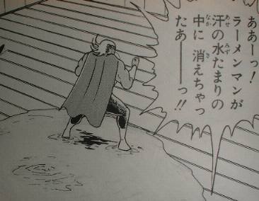 ![]() 今回の名場面。 変な格好の小学生が店内で いかにも小学生らしいどうでもいいイザコザでケンカをはじめたら普通は怒りそうなもんですが、 即答。「いくらでも使ってんか」 おっちゃん気前良過ぎ! 目の前でナイアガラ4人前をほぼ丸ごと食べ残された直後のことですからなおさらです。 料理を丸ごと食べ残した直後 もんじゃ焼き(同じ伊勢エビ入り)をうれしそうに食う小学生たち。本当に失礼ですね。 このおっちゃん、見かけは怖いですがすっごく良い人なのかもしれませんね。 ・・・いや、待てよ。カニ男が店内で竹刀振り回してても止めなかったからな。 なんにも考えてないだけなんだろうな(作者が) この店主が一般人ではなく暴力団の構成員か何かで竹刀振り回すくらいは日常茶飯事なのかもしれませんが・・・。 なんだかんだでこのドラゴンもんじゃの素朴な美味しさに感動した天満くんが心を入れ替えて以下略という 実にどうでも良い茶番で幕を閉じます。 ![]() オチは 「カンロくん新幹線に乗りおくれちゃうよー!」 「もうちょっと大阪の食べ物食べさせてよー!!」 という、もう とってつけたような大阪に対するフォローって感じです。 さすがのゆでたまご先生も 今回大阪を馬鹿にし過ぎた事に気付いたのかもしれませんが、馬鹿にしているのは大阪だけじゃないので全然フォローが足りてません。もっと土下座してください。 しかし自らの故郷をこれだけ馬鹿にするとは・・・脱帽です。 さようなら 浪速の天才グルマン天満虎男・・・。 こんなにすごいキャラクターなのに この話以降一切出てこないのは本当に残念です。 おまけまんが 闘将!愚瑠男 ![]() ![]() ![]() ![]() ![]() |