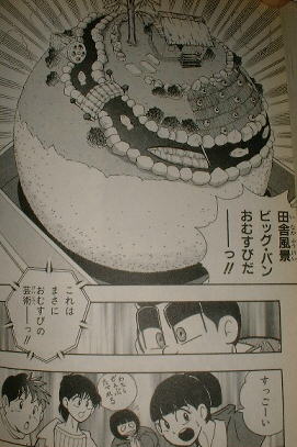 「東北」ってドラゴンボールの界王様が住んでる星みたいな形してるんですね。 さて一方の天才グルマン食井カンロくんの弁当は? ![]() ただのバカでかい酢めしのかたまり。 読者なめてんのか? 金かえs・・・・・・えっ? ![]() カンロくんの姿が き・・・消えた!? このままずっと消えていてほしいと願う。 続く |