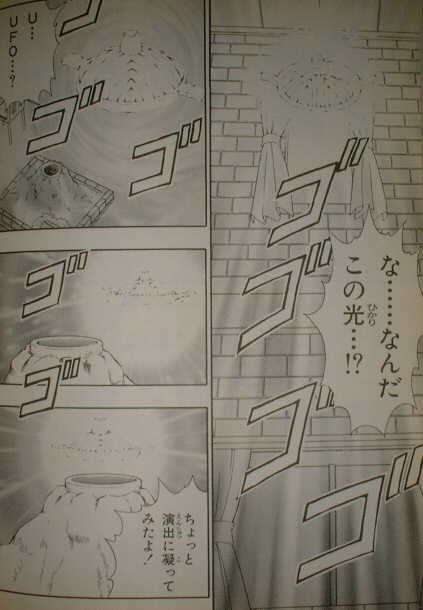 なぜ同時進行でなく霜降氏の調理が先なのか。後出し絶対勝利の法則により不公平すぎます。 あと日本語が微妙におかしいです。いつものことですが。 ●火炉(韓国料理で出てくる独特の鉄鍋らしい)が光りながら空を飛びます。なんでやねん。いつものことですが。 ![]() 「ちょっと 演出に凝ってみたよ!」 凝ったとか凝らないとか そういう問題ではありません。 ![]() 「着陸ーっ!!」ズーン タスケテ ●シモフリ〜ン ゆでたまご先生は松山せいじ先生の6年先を行っていました。 ![]() これ以上の霜降り肉の効果音は考えられない もちろん、後出し絶対勝利の法則により、キムさんの焼肉の圧勝となりました。pめでとうございます。 オチはキムさんと霜降さんの突然の和解でした。伏線は一切ありません。 ハァ???としか言いようがない。 「負けた方はこの街から出て行く」という無茶な取り決め。 素材に「ステーキにはいいが焼肉には超不利」(キム談)である牛外もも肉を使うこと。 それらを一方的に押しつけたのはジョー・霜降です。(一応勝負をけしかけたのはキムさんとはいえ、それは霜降に器物破損された怒りの勢いもあるから大目に見たい。) これだけ好き勝手やっといて、イザ負けたら和解。ムシがよすぎます。 もし霜降が勝ってたら、当初の取り決め通り、容赦無くキムさんを街から追い出してたと思うし。 敗者は失う・・・! それをねじ曲げたら・・・・・・・・・・・・ なにがなにやらわからない・・・・・・ 受け入れるべきだっ・・・・! 負けを受け入れることが・・・・敗者の誇り・・・・オレは・・・・・・ 負けをぼかさないっ・・・・・・・・・・ (「賭博黙示録カイジ」13巻より) こんな鬼気迫る、負けたからには勝負の前の約束通り「指4本の切り落とし」でさえ受け入れるという、 読んでるこっちが手に汗握っちゃうようなカイジくんの覚悟。に比べると、 「ジョーさん今度私にステーキの焼き方を教えてくれませんか?」 「本当はオレ・・・焼き肉が大好きでね・・・」 なんていう取ってつけたようなしみじみオチはまさに茶番。 そもそも「焼肉屋の煙が迷惑」「ステーキ屋の犬が迷惑」といったモメゴトの原因が全く解消されてないので、全然ダメです。 煙の方向なんとかするとか犬の飼い方なんとかするとかそういった話し合いはできないのでしょうか。 担当編集さんはネームの段階で「もういちど作り直せ」と言えないんでしょうか。 でも悪役キャラを韓国人にするといろいろ危険な感じがする気がするので キムさんが温厚で善人って設定だけはこのままでいいと思います。! もし霜降さんとキムさんの立場が逆なら・・・キムさんが火病(ファビョ)って他人の店に怒鳴りこみ家宝を蹴り壊す描写になってしまいシックリしすぎてうわなにをするやm |