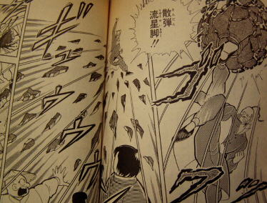 | どうもこんにちは。人妻も喜ぶグルマンくん大紹介もいよいよ大詰めです。 ついに単行本第4巻に突入しましたよー! 「そうら どんどんいくぜ!」 今回は、前回のラスト 茶屋醤男くんのスーパー飾り切り作業シーンの続きから始まります。 前回と同じように 千切りにしたスイカを包丁でピシピシ飛ばしてもう一つ菊の花を作り上げ、合格一番乗りを決めます。 こんなに超絶ものすごい行為なのにミリンちゃんの「すごい」3文字小コマ1コマでサラッと片付けられます。 「さあ次は王府の番だ!」 ![]() 中華料理の刀削麺の要領でスイカを千切りにしていく王府くん。 審査員も驚きの表情を隠せません。 「柔らかなスイカの果実をまな板に突き刺さるくらいにまで 鋭くシャキシャキの千切りにしている・・・」 ピシィピシィと音をたてながら 固いまな板に次々と突き刺さるスイカの千切り。さすが天才少年グルマンです。 ちょっと待て。 いつものことですが、ゆでたまご先生はこういうトンデモないことをサラリと流してくるので油断できねー。 ・・・とはいえ、こんなもん どうツッコんだら良いか見当もつかねーです。オレの負けです。 「ギャハハハ こんなことは誰もできねえだろ!」 と王府くん。まさしくその通りすぎてグゥの音も出ません。散弾流星脚みたいなものと思ってあきらめましょう。