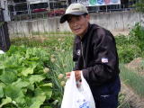 | また、地元茨木の福井の畑からもお世話になっています。 気さくな彦坂のおじさん、おしゃべり好きの小川のおじさんから朝電話がなります。 『なすができとるで。採りにきてや』 『豆使わんか?』 シェフのお母さんも店の手助けをしてくれます。 早朝バイクを飛ばして、ちょっとぶっかこうだけどみずみずしい採れたての減農薬野菜をお店まで運んでくれます。 |