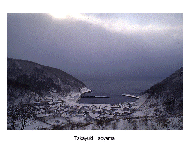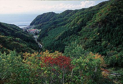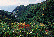 ![]() [初秋] 九艘泊の奥の道路から見た集落 |