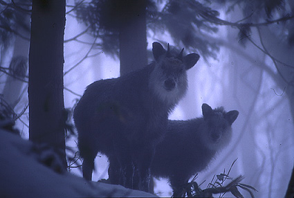 ここに掲載した二つの写真は いそやま たかゆきさんの作ったポストカードから引用させてもらいました。 見て判るとおり,ニホンザルとニホンカモシカです。プロの写真家なので,もっと一杯一杯写真は あるのですが,勝手に借用するわけにはいかないので,ポストカードになっているもののうち,二つ だけを借りました。
