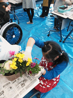 毎年人気の寄せ植え教室(参加者41名)。