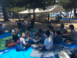 猛暑の中、肉を焼く人たちは大汗でしたが、みんなでたくさんの焼肉や野菜、焼き
