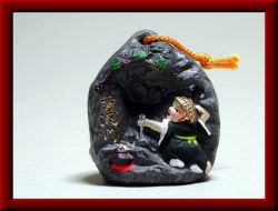 | 大分県郷土玩具 地獄焼 明治三九年頃別府血ノ池地獄の赫土をもって焼き出されのが地獄焼の始まりである。 おんま (昭和四十一年工芸みやげ品受賞作品) 鉄輪温泉蒸湯の開祖一遍上人が、唯今の別府上人ケ浜に上陸されたのは今より七〇〇年前の建治二年の事である。 御上陸後鳴動する灼熱地獄沈静の為、亀川から鉄輪にのぼられた一遍上人の御徳に深くうたれた兵助と云う若者が、一頭の馬を献じてその御供を申し出で、道中の御安全の為忠勤をはげんだ故事に因んで作り出したものにして、交通安全、魔除けの土鈴として、音色の妙を楽しんでいただきたいと存じます。 別府 豊泉堂 |