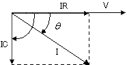 RC並列回路の場合も、回路の電圧 V を基準にして 考え、IR と IL、及び I をベクトルで表します。