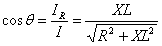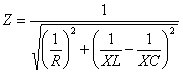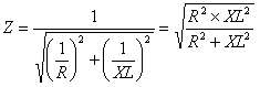 、 で抵抗と誘導性リアクタンスを表し、合成インピーダンスは で計算することができます。 |