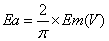 左図の正の半サイクルの面積と、グレーに塗りつぶしたエリアの面積が等しくなる点の値Eaが平均値になります。