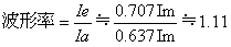 正弦波交流電流の最大値を Im 、実効値を Ie 、平均値を Ia とすると、波形率は約1.11になる。