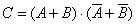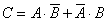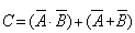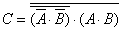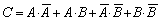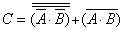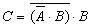 ひとつ目に、図-1の回路をまず論理式にして、簡素化して行きます。(c=C、a=A、b=Bとします。)