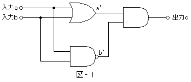 図-1の1段目の論理回路出力をそれぞれ「a’」、「b’」として考えて見ます。