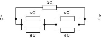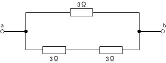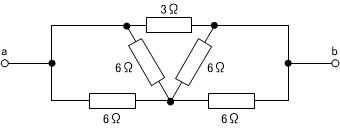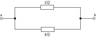 最終的に、3Ωと6Ωの抵抗二つが並列接続されているだけの回路と等価とみなされますので、抵抗値は