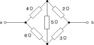 図-1に示す回路において、端子a−b間の合成抵抗を求めよ。 |