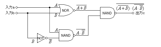 図-1の論理回路における入力a,b および 出力c の論理レベルの関係式は( )で表される。