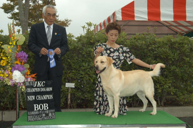 5月 FCI近畿(単独システム) 昨年ラブ展からショー復帰の「グレィシー」BOB&「ダイ」EXGでチャンピオン完成