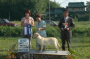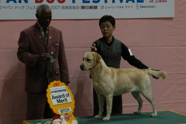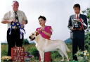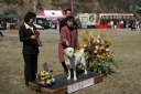 | 今日もあいにくの雨天でのショーでした。(何故か、ラブ展は天気に恵まれない事が多いようです?) 英国CREMINO犬舎Mr G Jhonson審査員の下で、「ベス」はBISSを獲得しました。 成犬でのBISSは、当犬舎にとって初めての事で、夢のようでした。 (ちなみに、パピーBISS・成犬BOSを以前獲得したのは、ベスの同胎の「スフレ」でした。) |