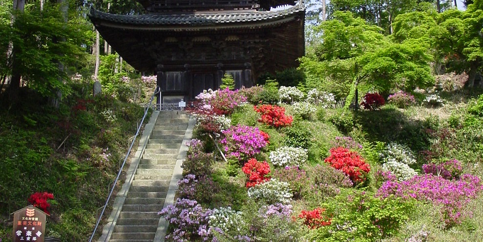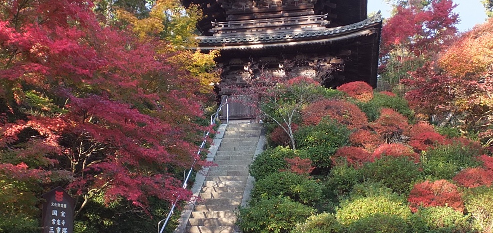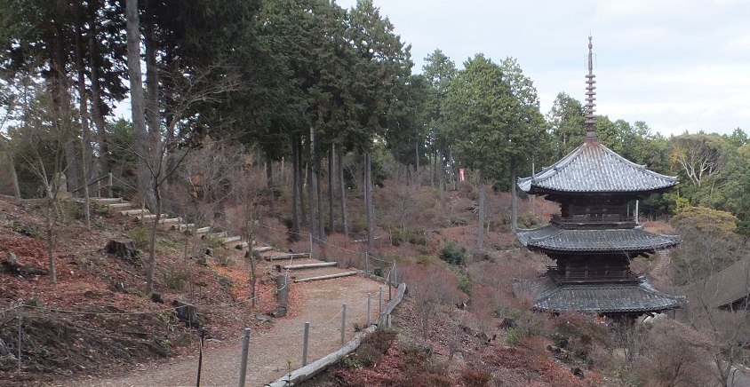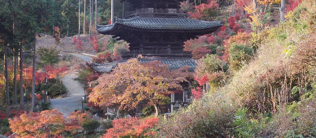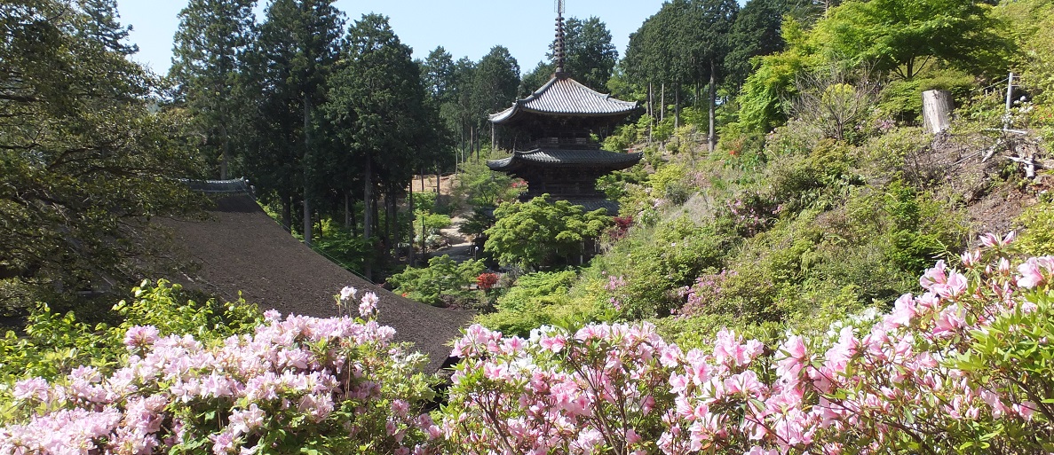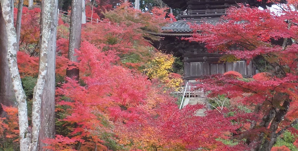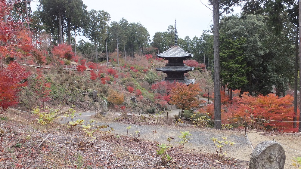 愚僧が住職になり、檀家の無い常楽寺は無収入であったので、サラリーマンをしながら寺院のお努めをしておりましたので土日以外の個人参拝の受付はしておりませんでした。それで20年近く手入れが行き届いていない裏山は荒れ放題でありました。平成17年秋の第1回特別公開を行うに当たり何とかせんと奮起、平成18年から毎年少しづつ境内整備をやり始めました。うっそうとした裏山の雑木をぼちぼ間伐、枝打ち、草刈り、中古のユンボを購入して整地し散策路造りと、間伐は420本、間伐した分モミジを400本植樹。また、ドウダンツツジは1,200本、平戸ツツジ1,000本植樹しました。いまだに整備途中です。
