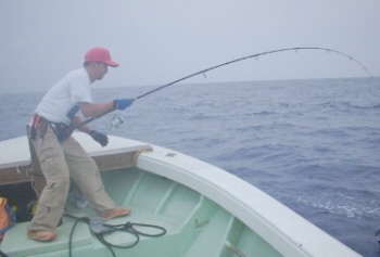 ●船縁まで大きな魚が追いかけて来たので、思わず竿先で8の字を描いたらガッポリと喰ってくれました。ライン