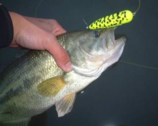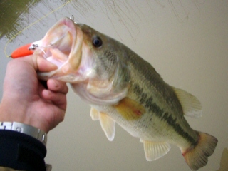 ●収まりがつかないので、フローターを持って東播へ。浮くのは6−7年振りでしょうか。いろいろ回って、バイトはあるものの1尾も取れず。最後の池でやっと当歳魚を1尾(チャガーSSD)。ウーンデッドスプークのXRY(イエローベリー)でも出ましたが、沈んだ草に巻かれてバレてしまいました。ほとんど諦めて帰ろうかと思っていた頃、岸際に投げてしぶとくゆっくり動かしていたラッキー13に突然のヒット。おそらく怒って出てきたのだと思いますが、一気にルアーが水中に持ち込まれ、こちらも慌てて大合わせ。無事に取り込むことができ、やっと円が閉じました。良いバスでした。