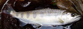 私は何時も生かし魚篭を背負っている、これが意外と便利な物である。 行きは氷と缶ビルを入れ何時でも冷えたビールが飲めるし、帰りは水と氷を入れ生かし魚篭としてキープした、いわな、あまごを泳がせて持ち帰るのである。 しかし今日は最初より全てリリースと決めてきたので単なる冷蔵庫である。 私でもあまごか少なくなったことを少しは危惧しているのである。