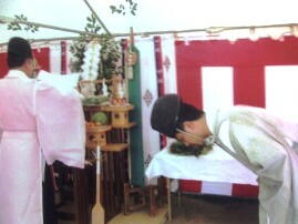 神前に玉串を奉り拝礼する。